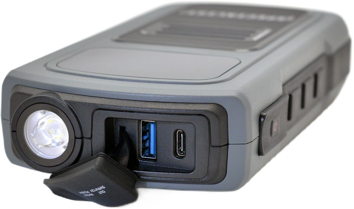| Особенности | Мощный выход для запуска 12-вольтового бензинового двигателя до 4.5 л. и дизель до 2.5 л. Мощный светодиодный фонарь с тремя режимами работы. |