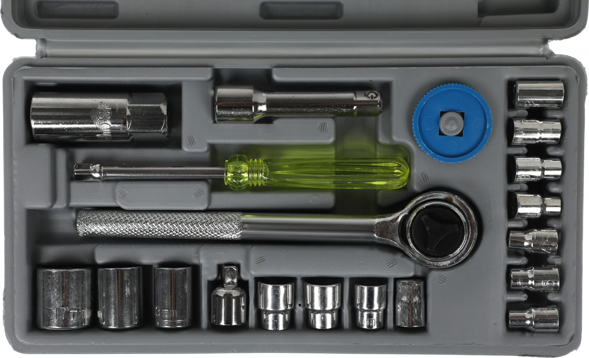 | Дополнительно в наборе, 3/8"DR | Вороток дисковый Удлинитель 70 мм Переходник 3/8" F x 1/4" M |