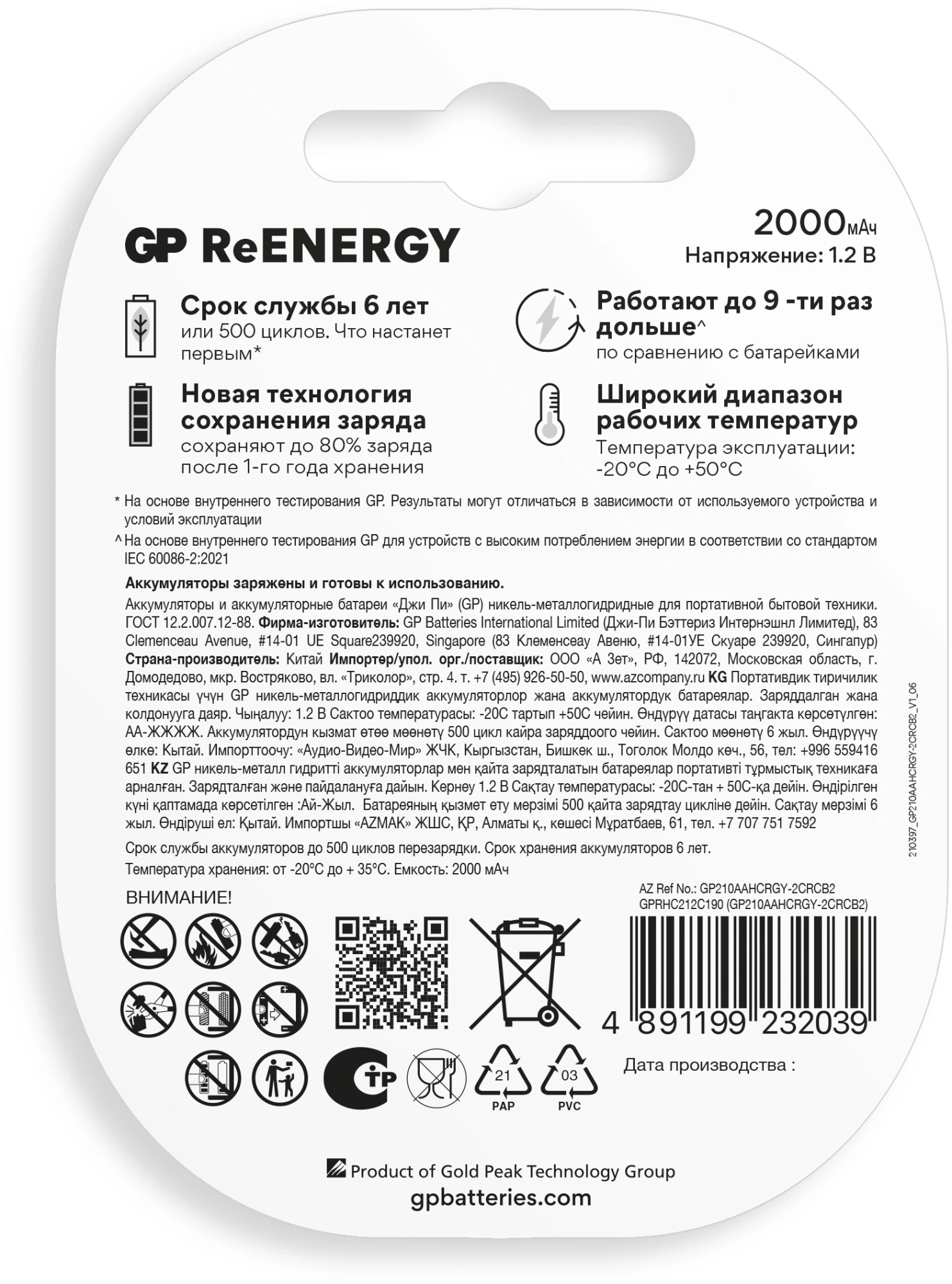 Аккумулятор GP 210AAHCRGY-2CRCB2 AA NiMH 2000mAh (2шт)