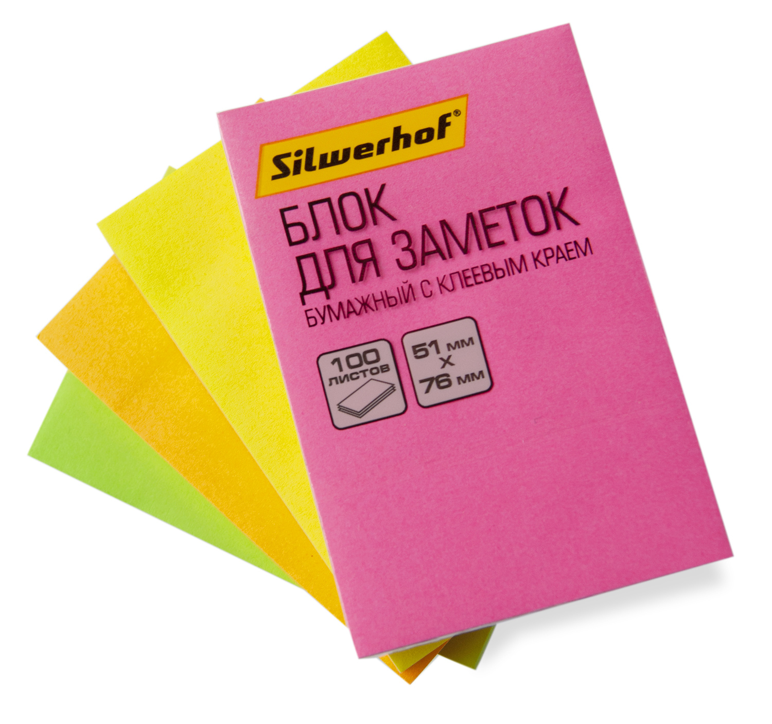 Блок самоклеящийся бумажный Silwerhof 682160-03 51x76мм 100лист. 75г/м2 неон розовый (12 шт. в упаковке)