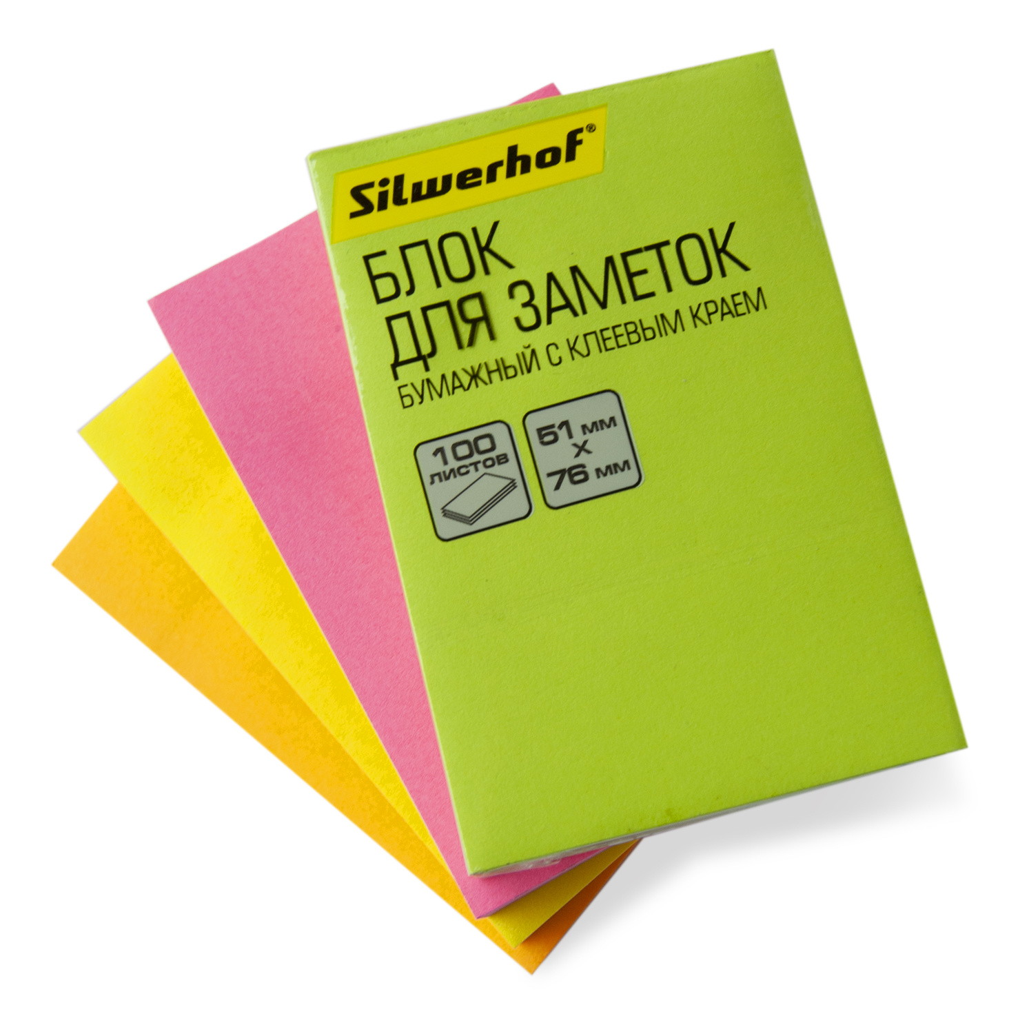 Блок самоклеящийся бумажный Silwerhof 682160-06 51x76мм 100лист. 75г/м2 неон зеленый