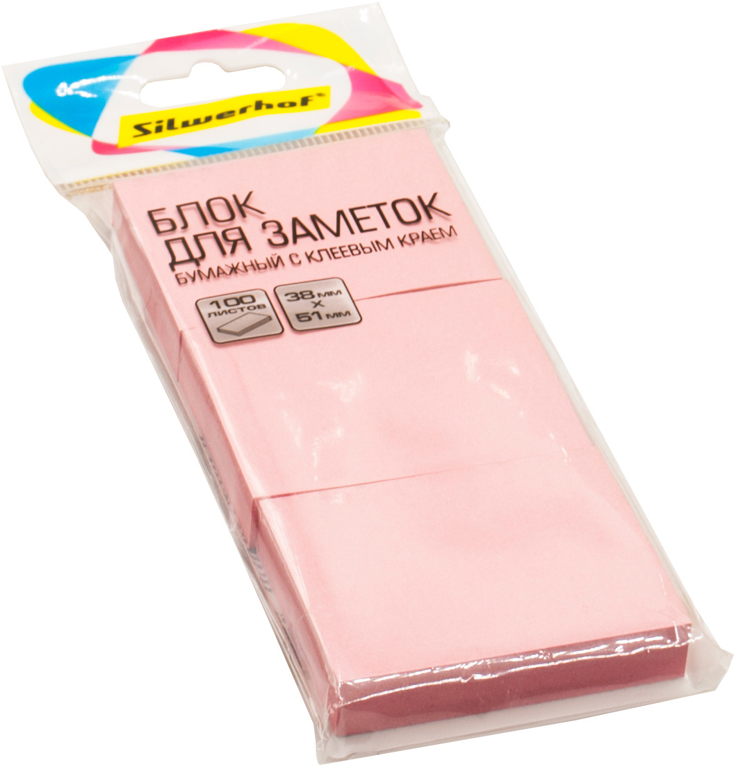 Блок самоклеящийся бумажный Silwerhof 38x51мм 100лист. 75г/м2 пастель розовый европодвес (упак.:3шт)
