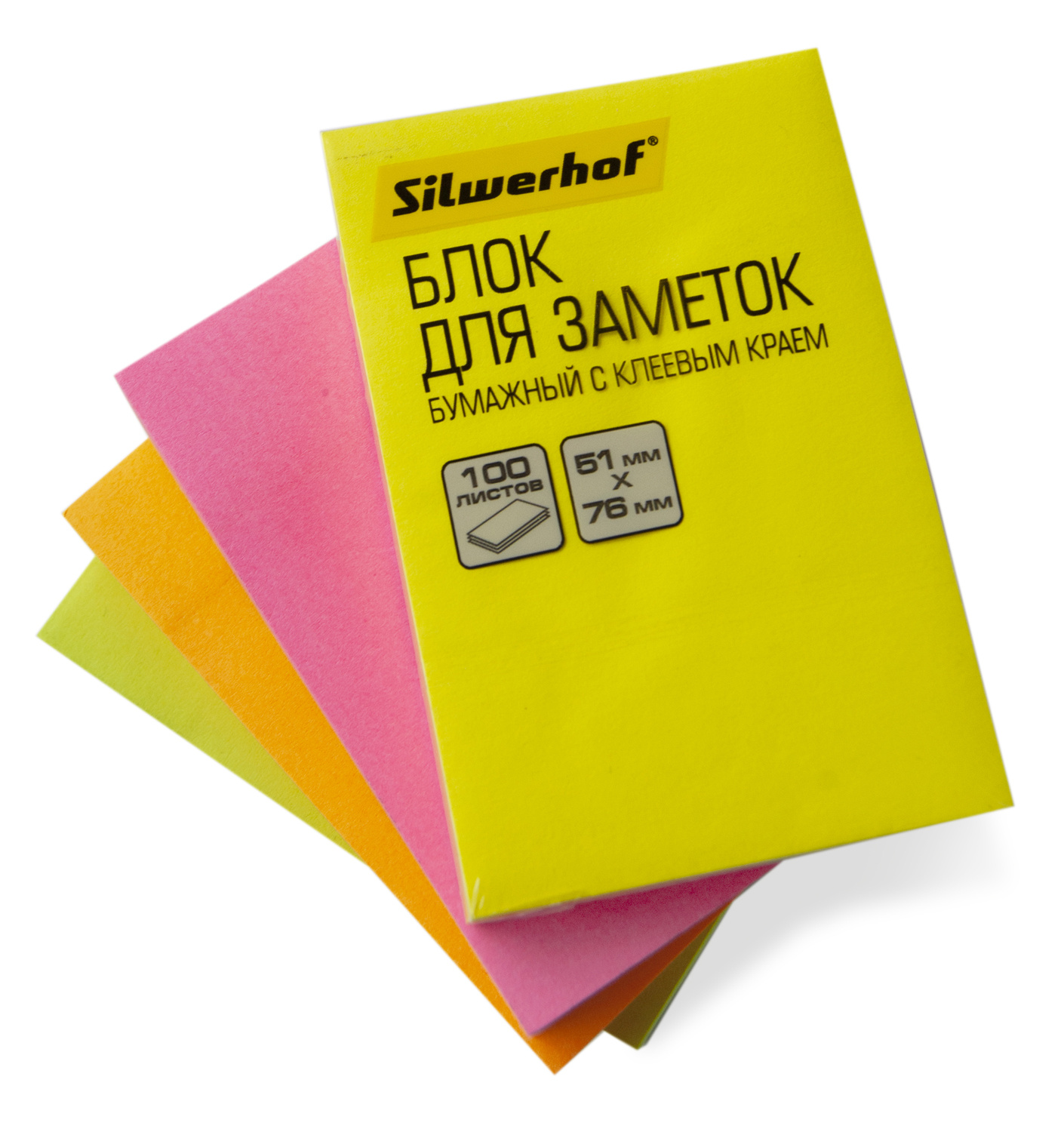 Блок самоклеящийся бумажный Silwerhof 682160-05 51x76мм 100лист. 75г/м2 неон желтый