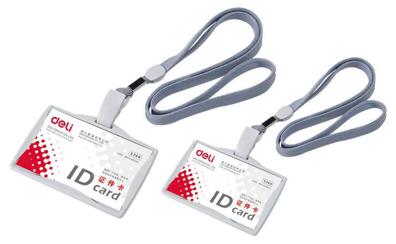 Бейдж для пропуска Deli E5744 103x78мм горизонтальный зажим вращающийся шнур:серый (30 шт. в упаковке)