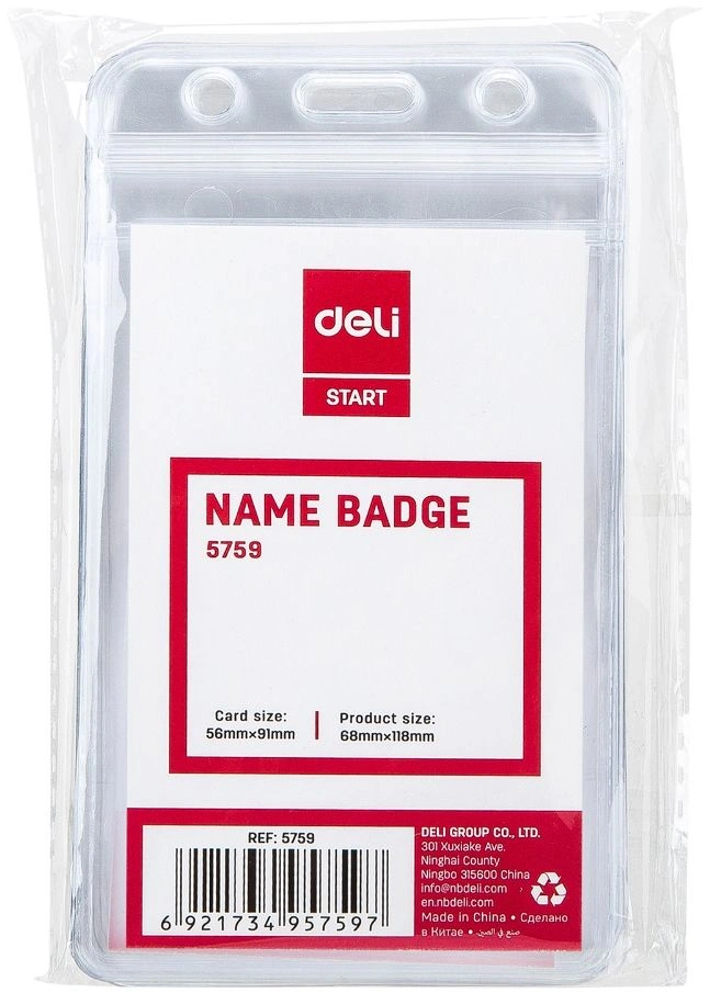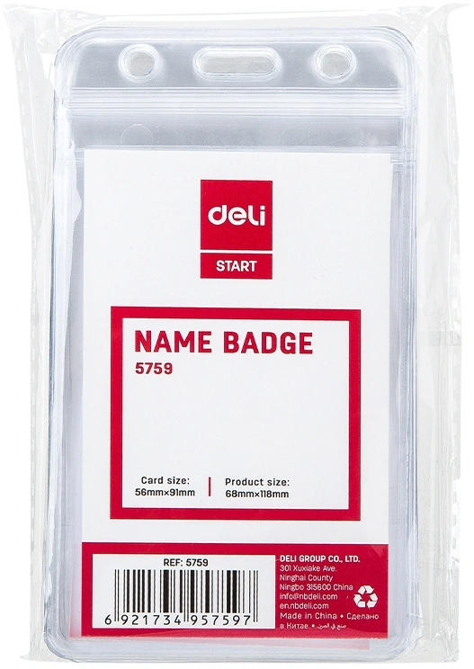 Бейдж для пропуска Deli E5759 68х118мм вертикальный без крепления ПВХ прозрачный (упак.:10шт) (10 шт. в упаковке)