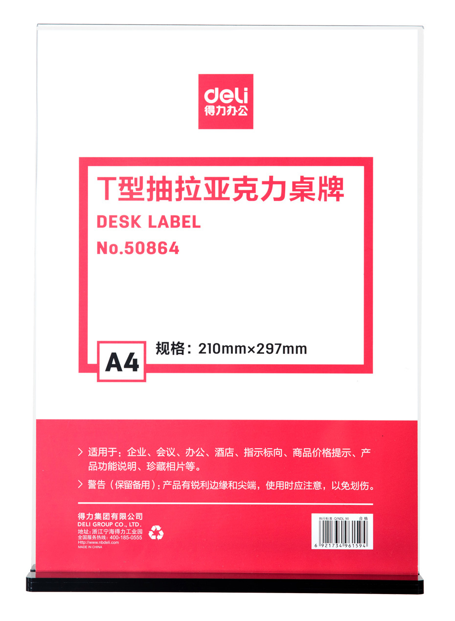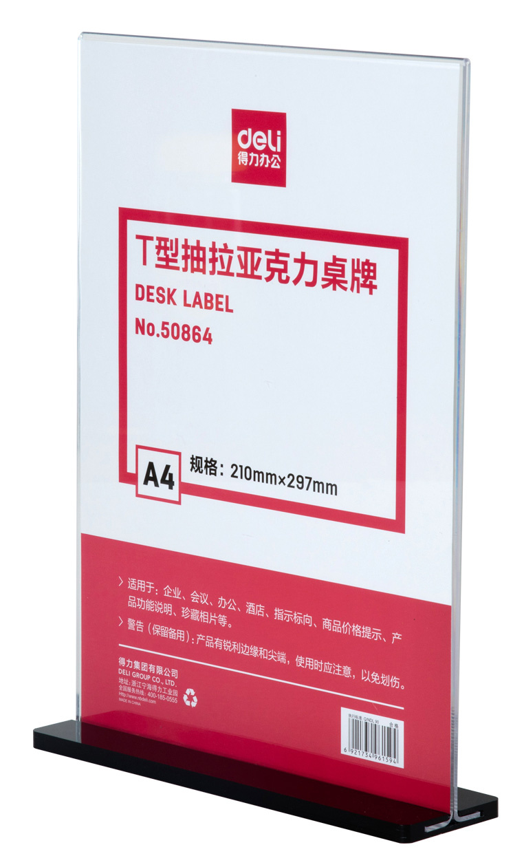 Информационная табличка Deli 50864 A4 21х29.7см настольная прозрачный