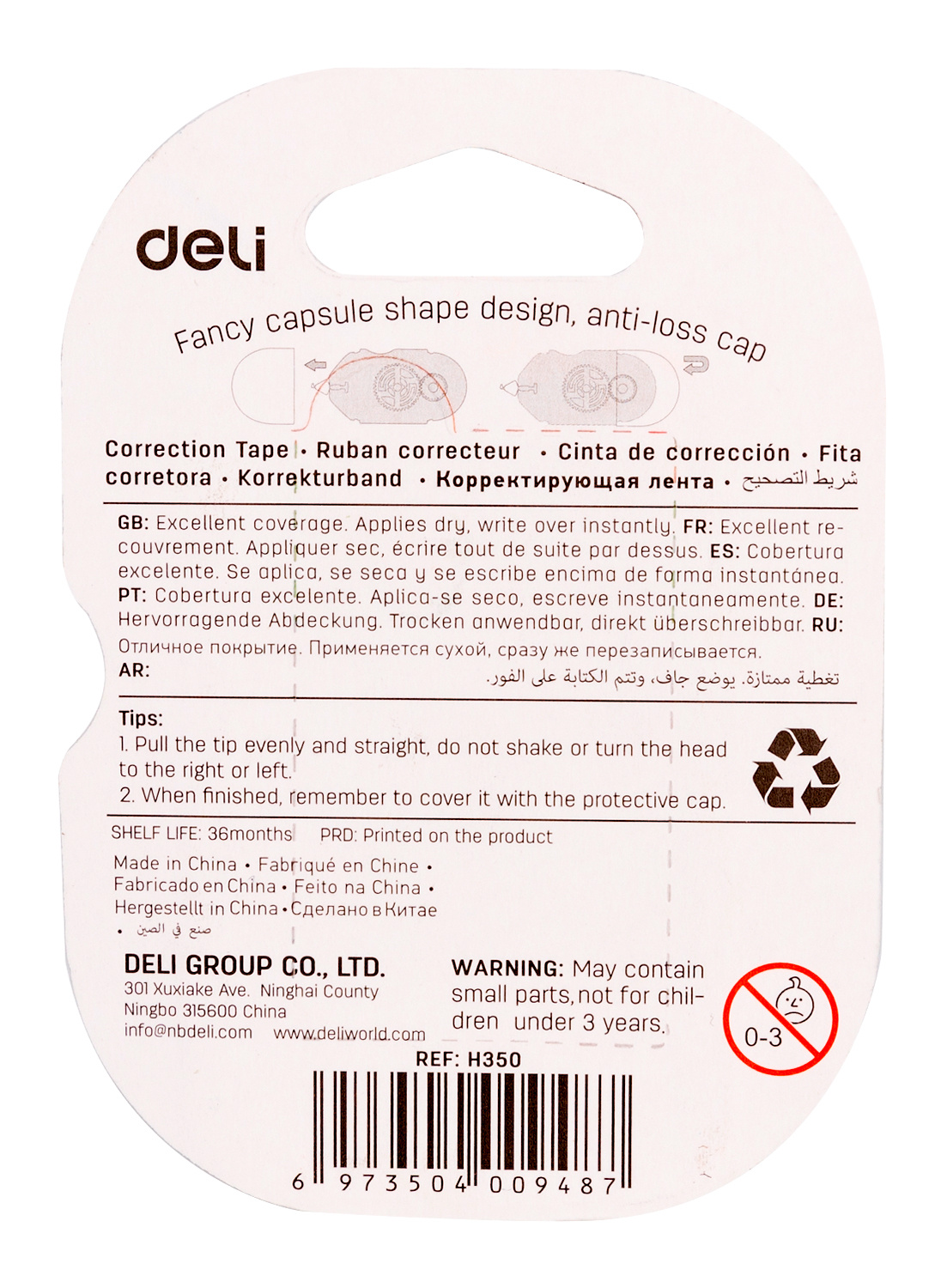 Лента коррект. Deli EH350 6мх5мм ассорти корпус белый блистер (24 шт. в упаковке)