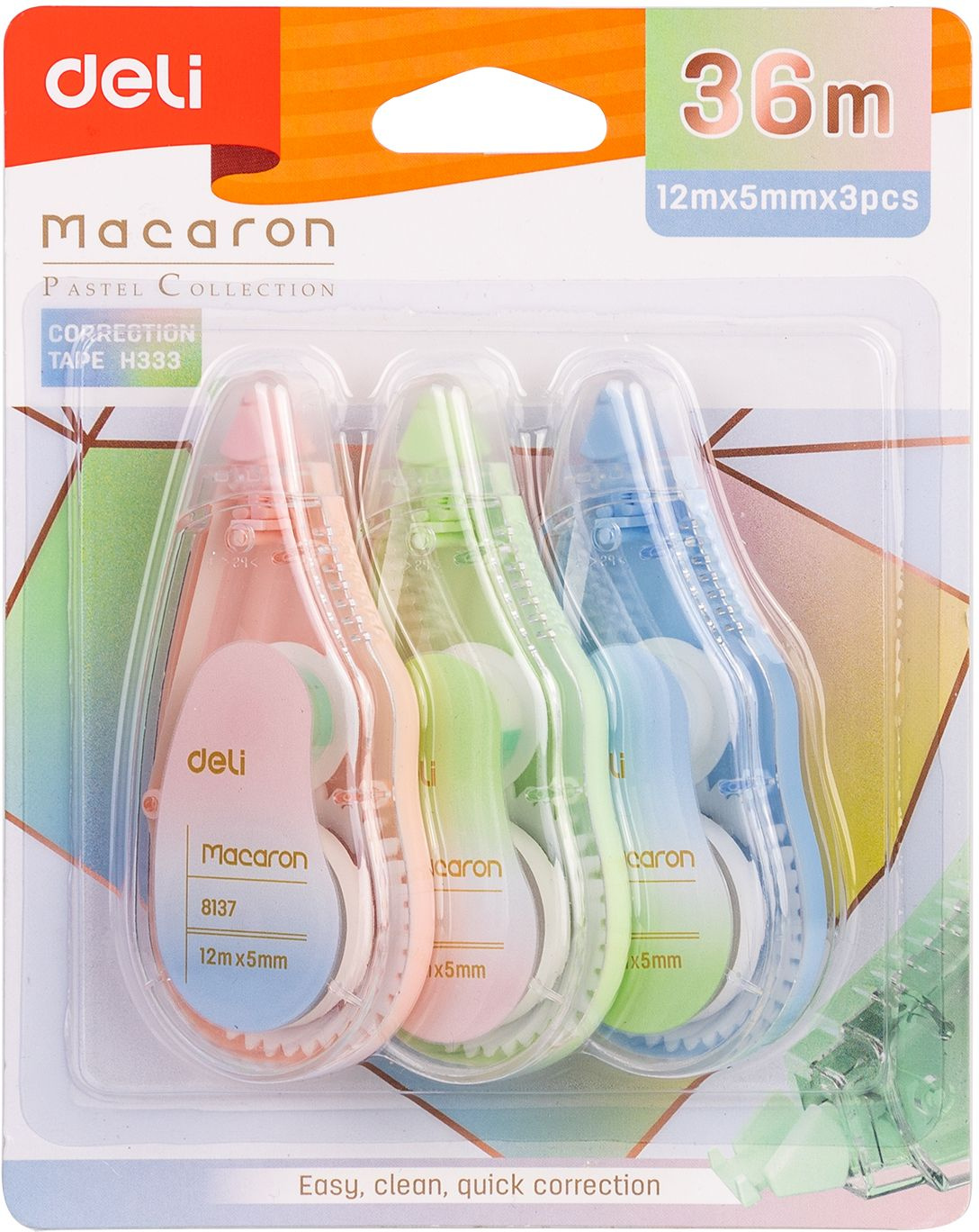 Лента коррект. Deli EH333 12мx5мм ассорти корпус белый блистер (упак.:3шт) (12 шт. в упаковке)