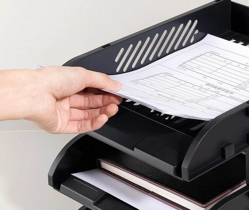 Лоток горизонтальный Deli E9213 BLACK сборный для бумаг 325x241x155мм черный пластик (упак.:3шт) пластиковый пакет
