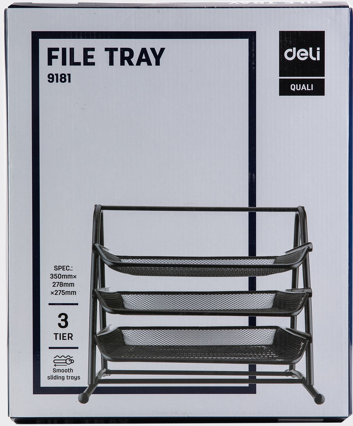 Лоток горизонтальный Deli E9181 для бумаг 350х278х275мм черный металл сетка (12 шт. в упаковке)