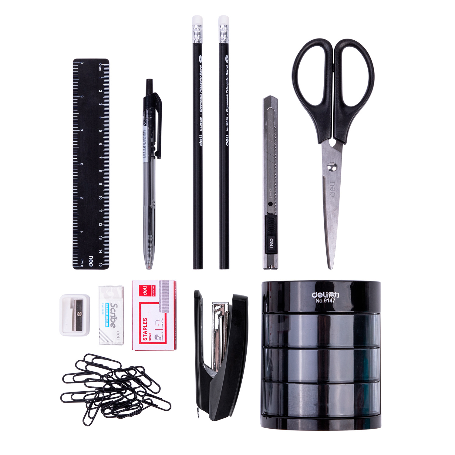 Настольный набор Deli E38253 (12 предметов) пластик черный