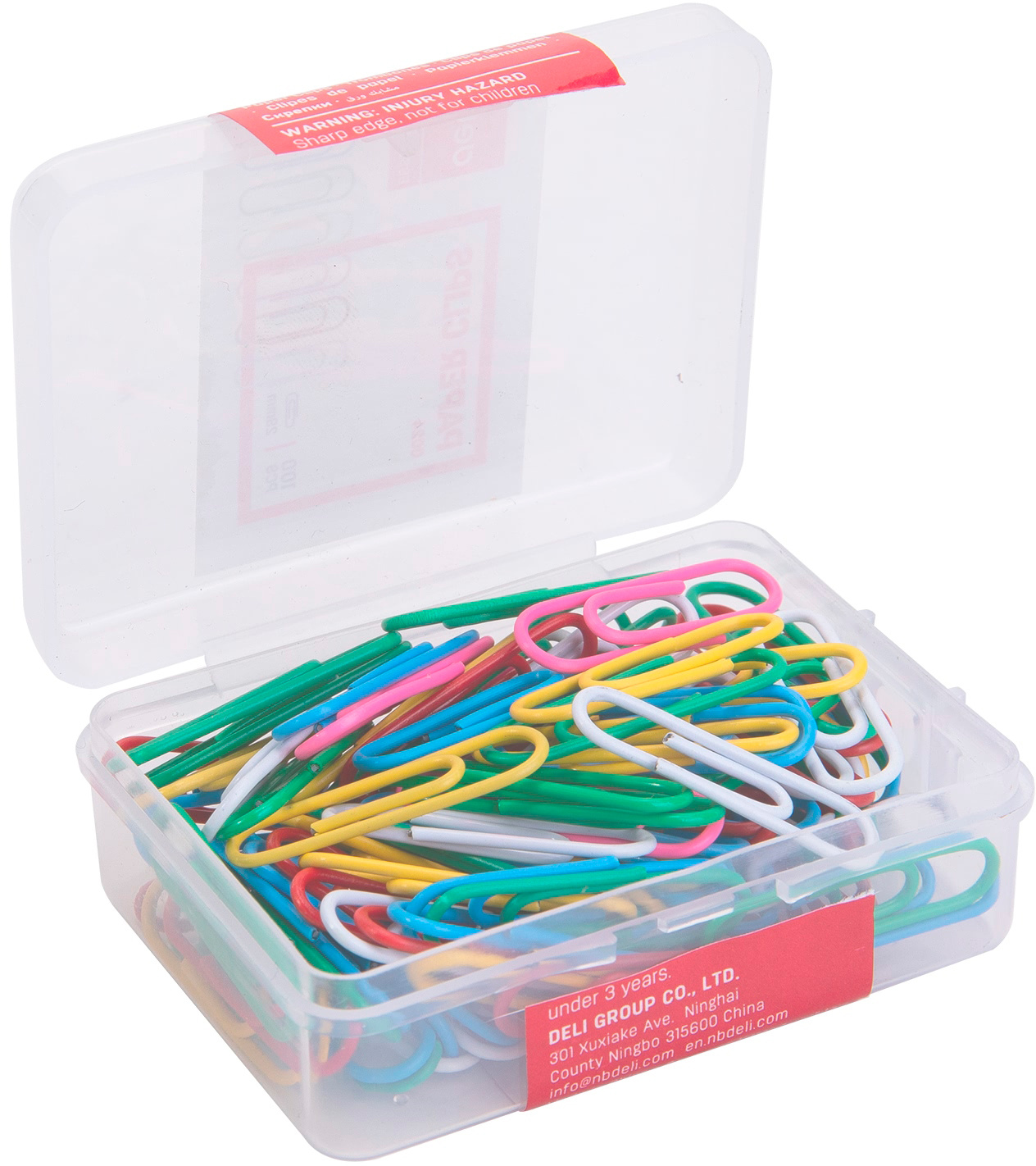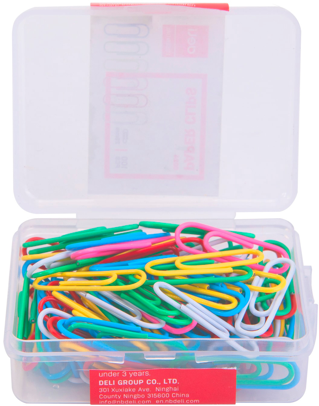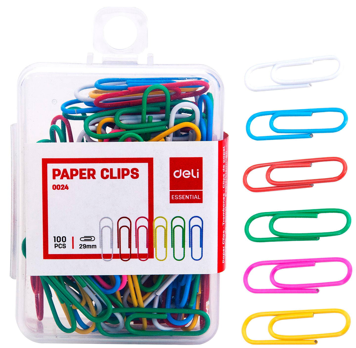 Скрепки Deli E0024 пластиковая оболочка 29мм ассорти (упак.:100шт) пластиковая коробка (10 шт. в упаковке)