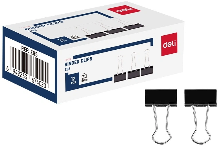 Зажимы Deli EZ65 металл 19мм черный (упак.:12шт) картонная коробка