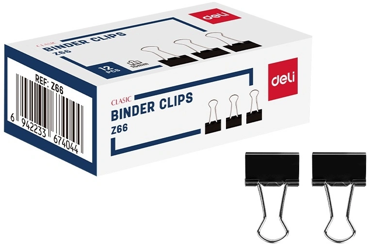 Зажимы Deli EZ66 металл 15мм черный (упак.:12шт) картонная коробка