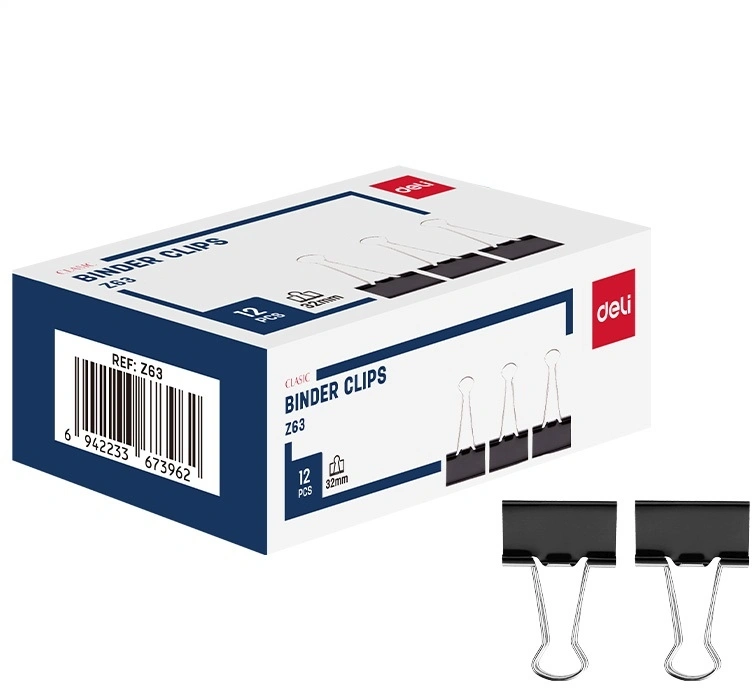 Зажимы Deli EZ63 металл 32мм черный (упак.:12шт) картонная коробка