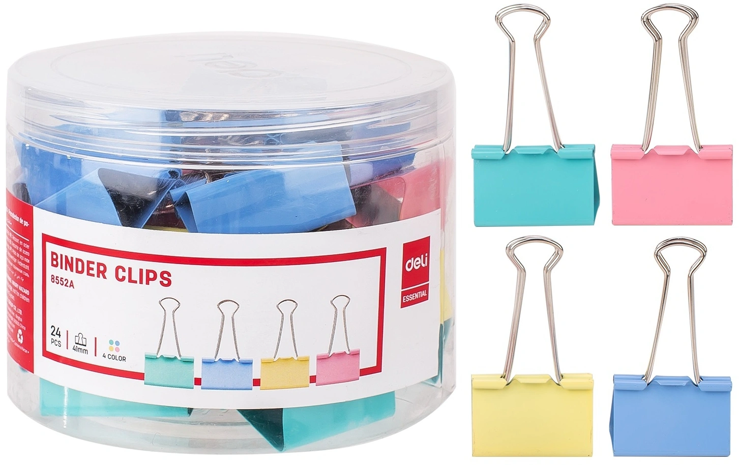 Зажимы Deli E8552A металл 41мм ассорти (упак.:24шт) пластиковая коробка (36 шт. в упаковке)
