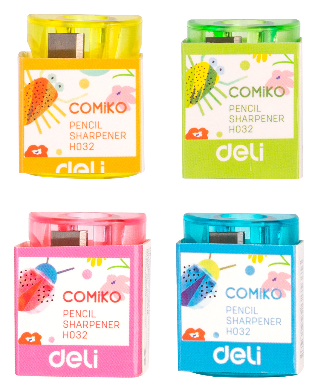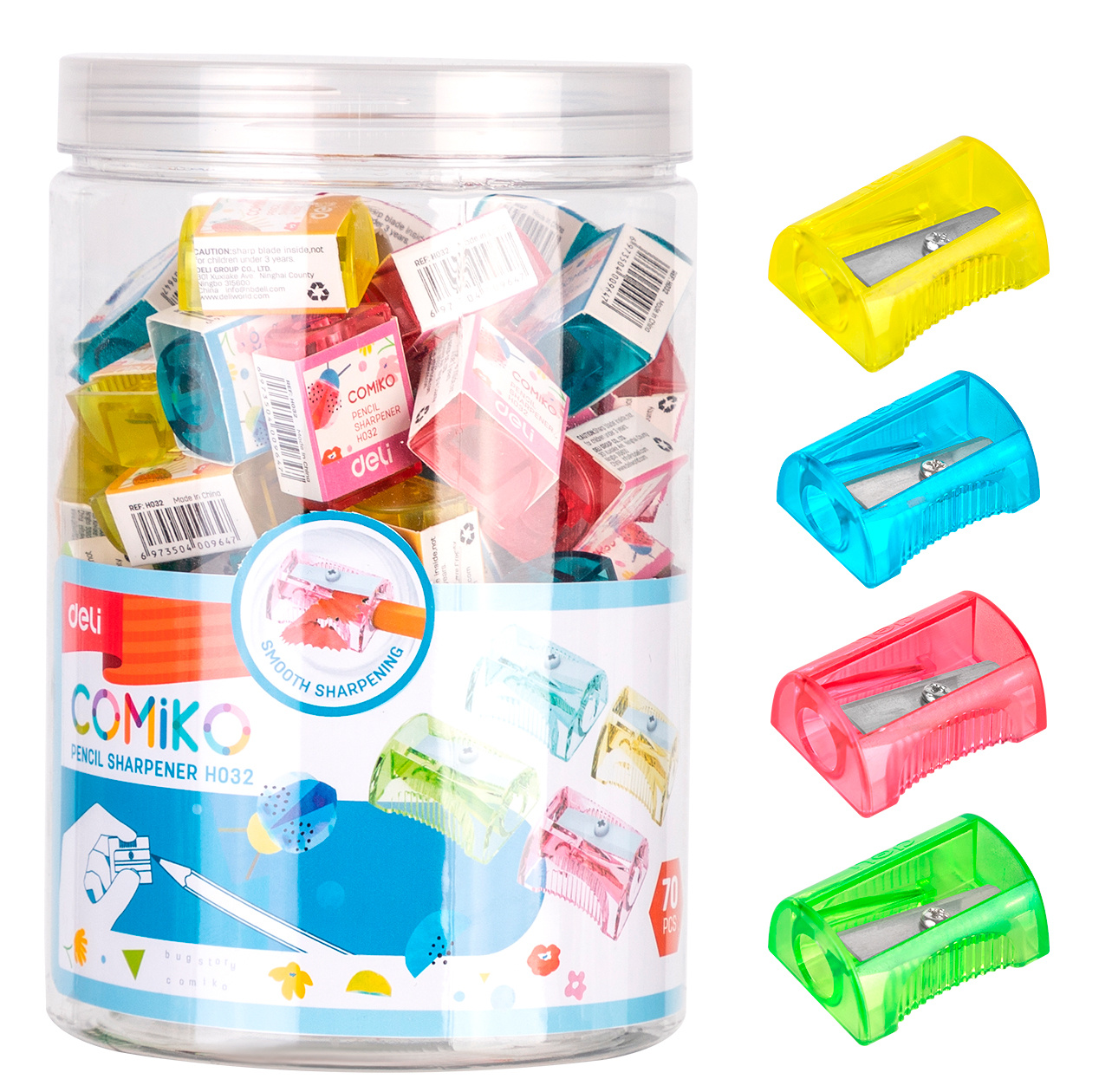 Точилка для карандашей ручная Deli EH032 Comico 1 отверстие пластик ассорти туба (70 шт. в упаковке)