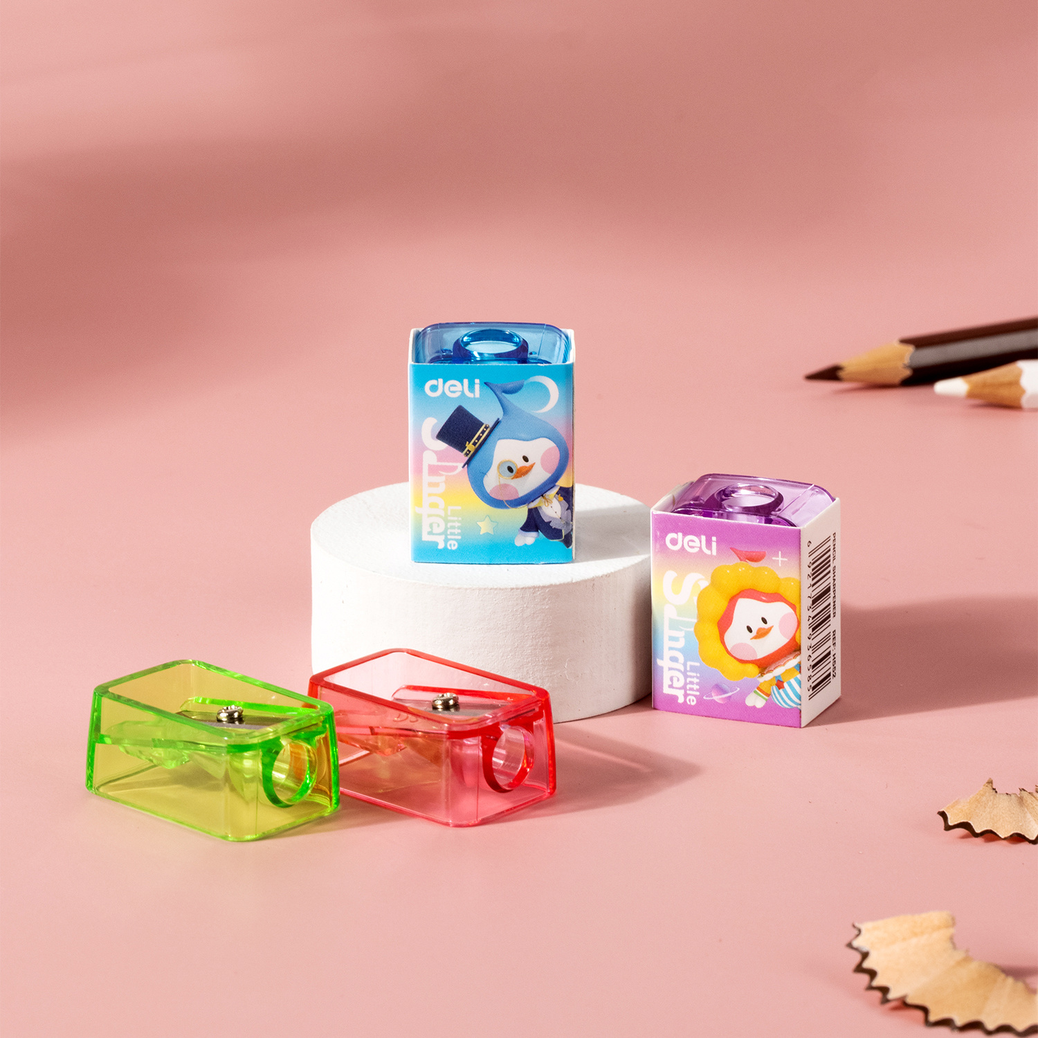 Точилка для карандашей ручная Deli EH552 Little Singer 1 отверстие пластик ассорти коробка (60 шт. в упаковке)