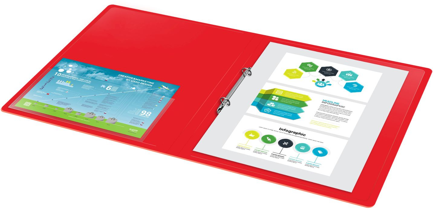 Папка на 2-х кольцах Бюрократ -0818/2RRED A4 пластик 0.7мм кор.18мм внутр. с вставкой красный (28 шт. в упаковке)