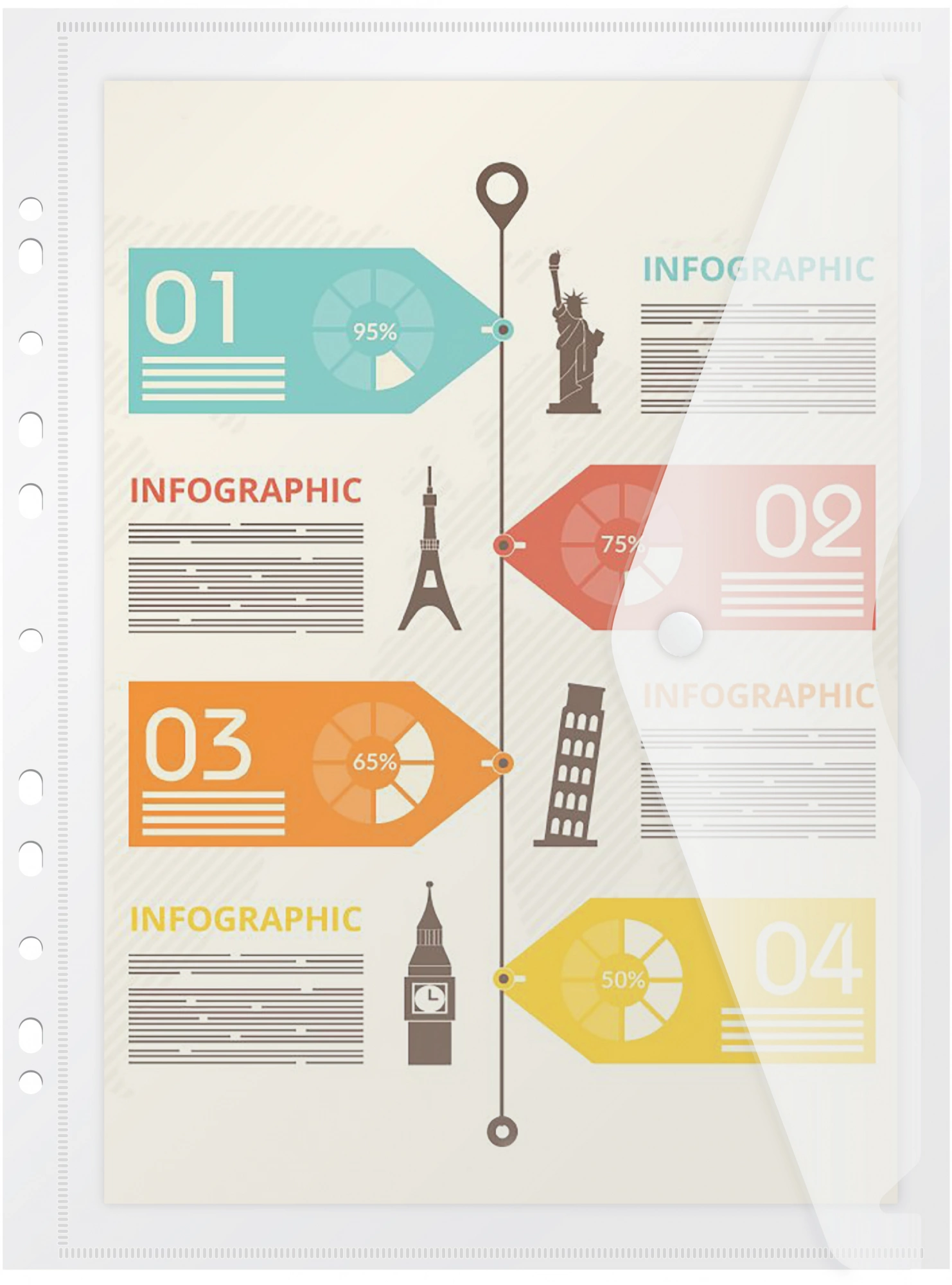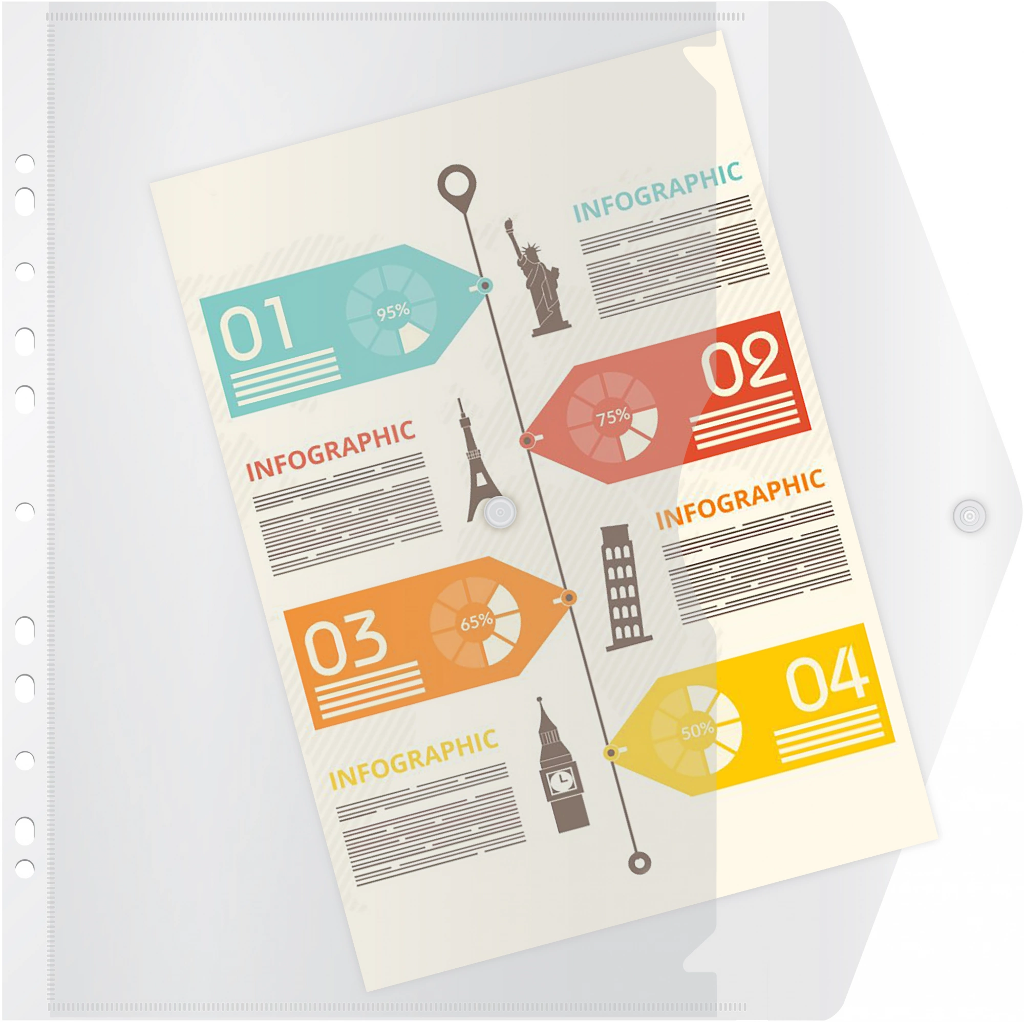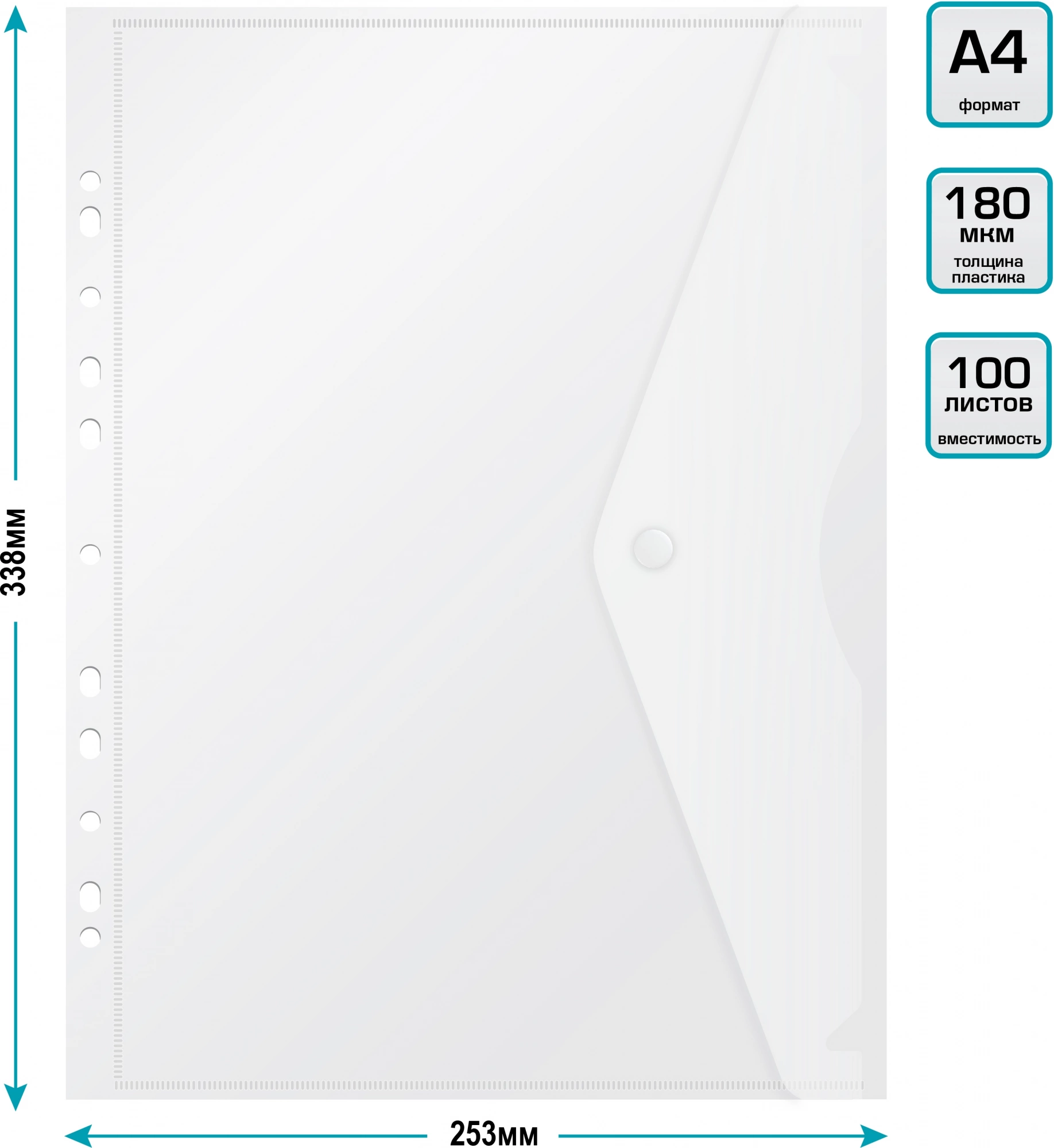 Конверт на кнопке Бюрократ -PK880CLEAR/1 A4 с перфорац. по длинной стороне пластик 0.18мм прозрачный (5 шт. в упаковке)