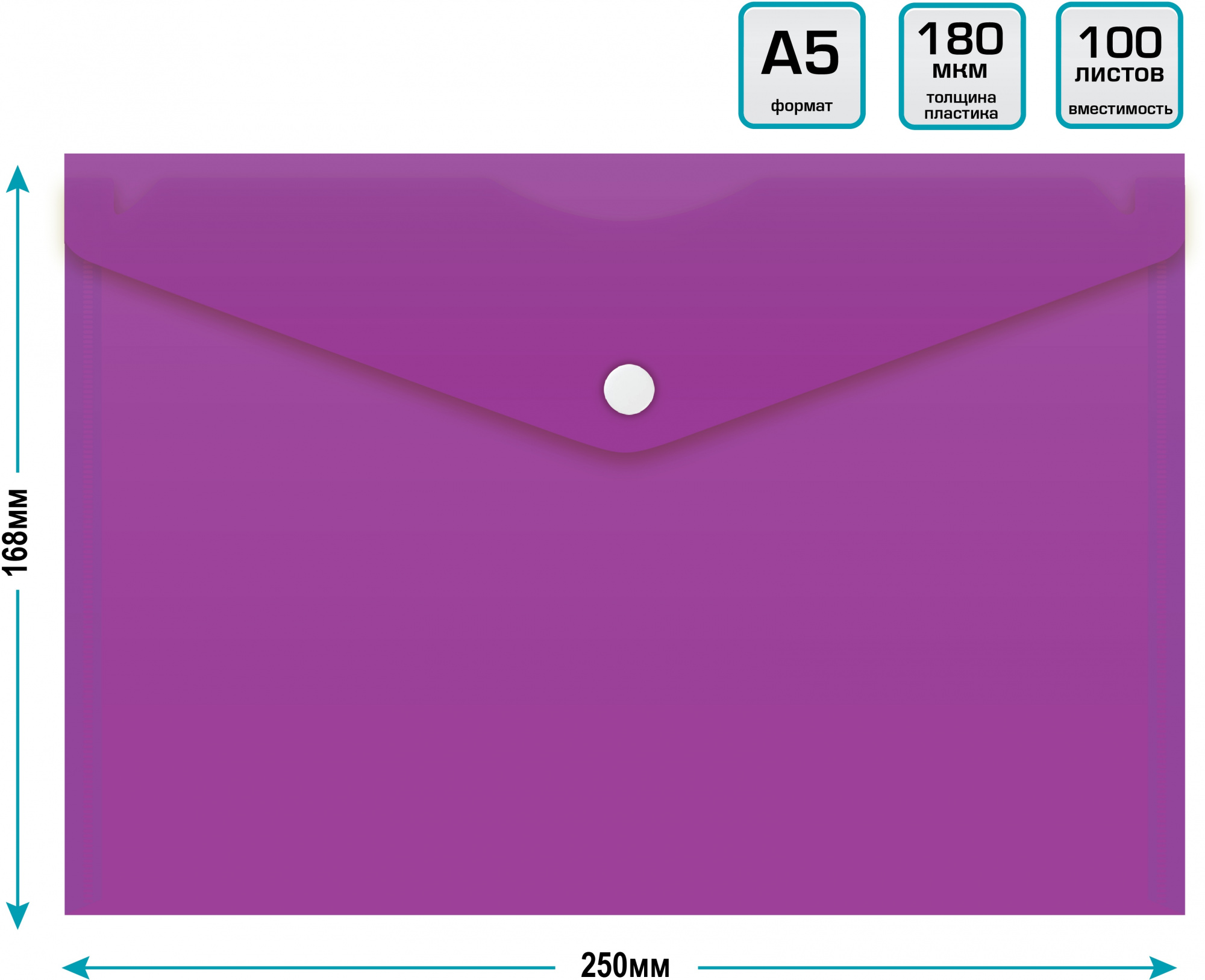 Конверт на кнопке Бюрократ -PK804A5NVIO A5 непрозрачный пластик 0.18мм фиолетовый (10 шт. в упаковке)
