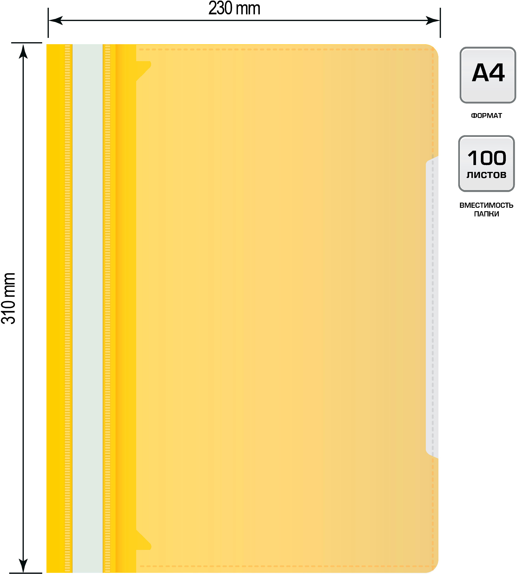Папка-скоросшиватель Бюрократ -PS-K20YEL A4 прозрач.верх.лист карм.на лиц.стор. пластик желтый 0.12/0.16 (20 шт. в упаковке)