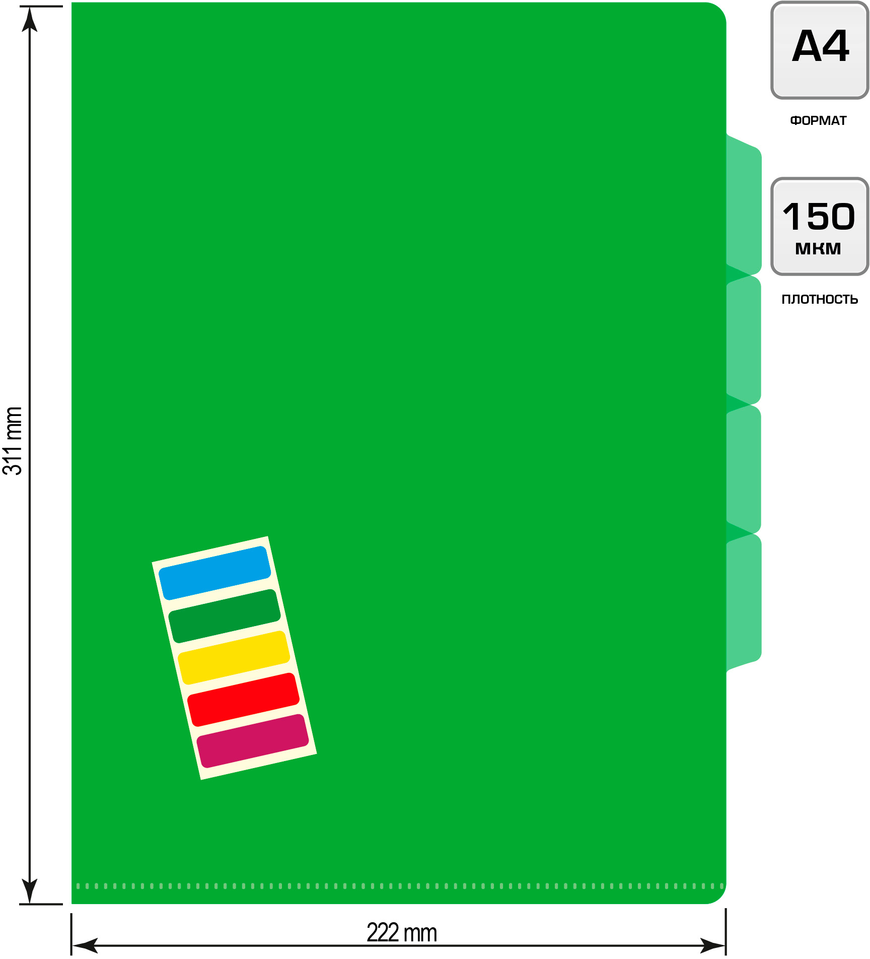 Папка-уголок Бюрократ -E356GRN 3 уровн. A4 пластик 0.15мм зеленый (10 шт. в упаковке)