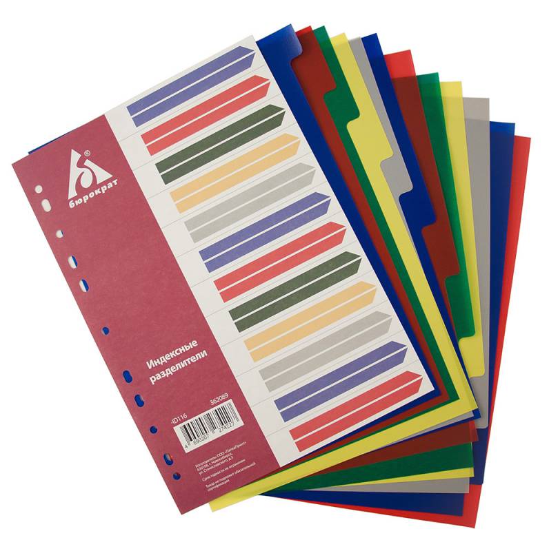 Разделитель индексный Бюрократ ID116 A4 пластик 12 индексов с бумажным оглавлением цветные разделы (10 шт. в упаковке)