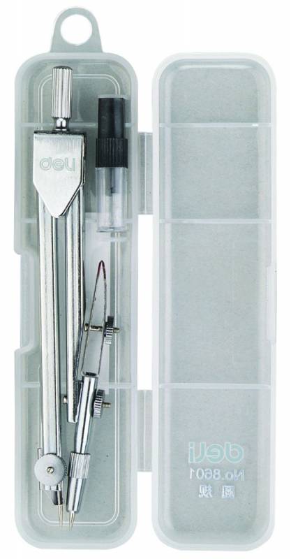 Циркуль Deli E8601 металл в компл.:набор грифелей (24 шт. в упаковке)