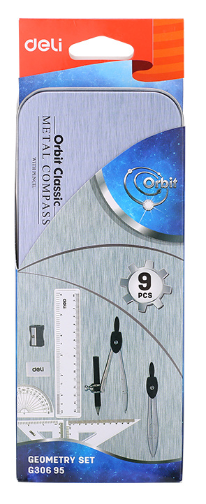Набор для черчения Deli EG30695 в компл.:циркуль/карандаш/кронциркуль/линейка 15см/2 треугольника/транспортир/ластик/точилка (12 шт. в упаковке)