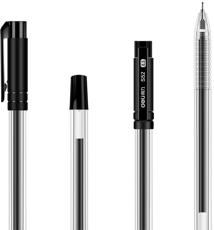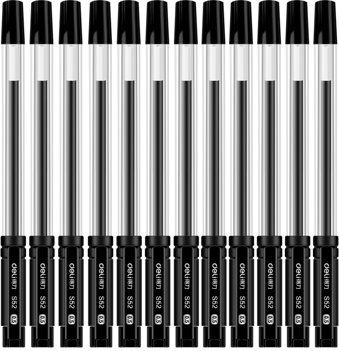 Набор ручек гелев. Deli 33205-BK прозрачный/черный черн. черн. блистер (12шт) линия 0.5мм резин. манжета 12 ручек + 12 сменных стержней (12 шт. в упаковке)