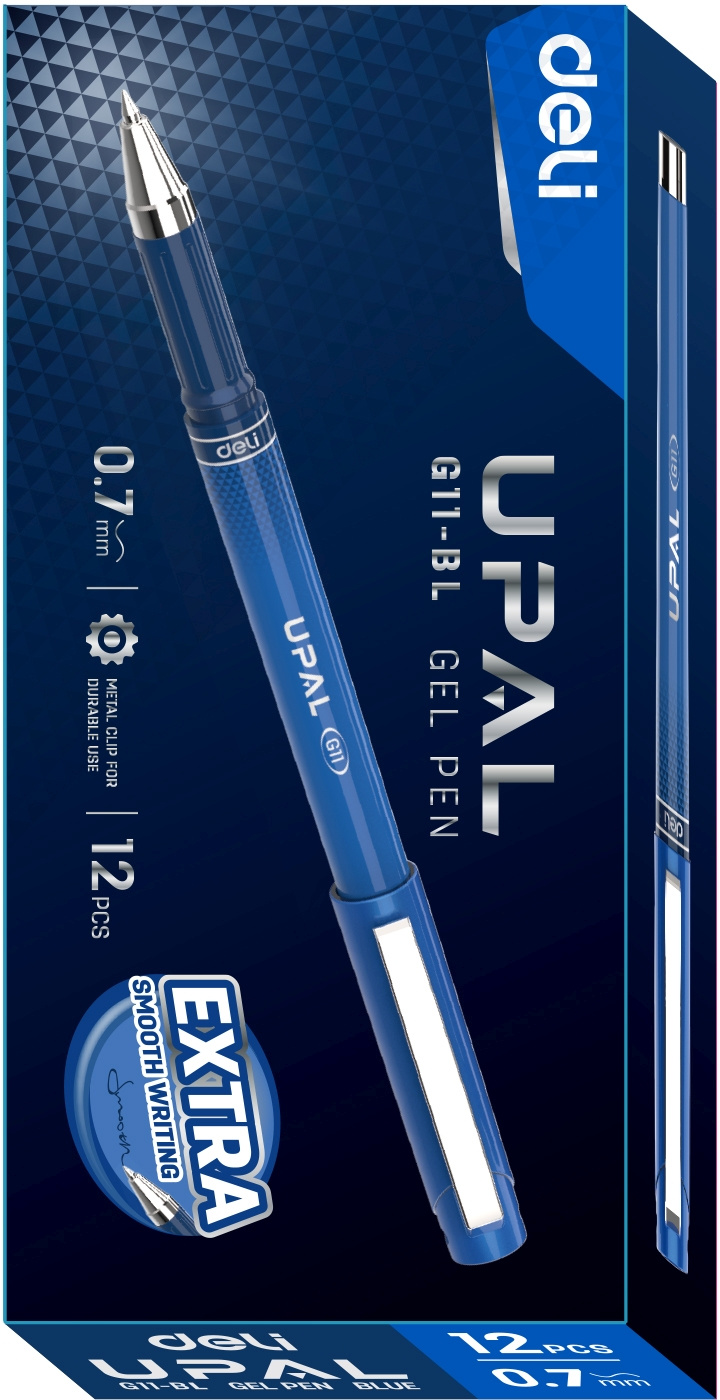 Набор ручек гелев. Deli Upal (EG11-BL-P) синий d=0.7мм кор.карт. (12шт)