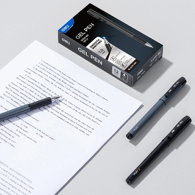 Ручка гелев. Deli EG159-BK ассорти d=1.0мм черн. черн. резин. манжета