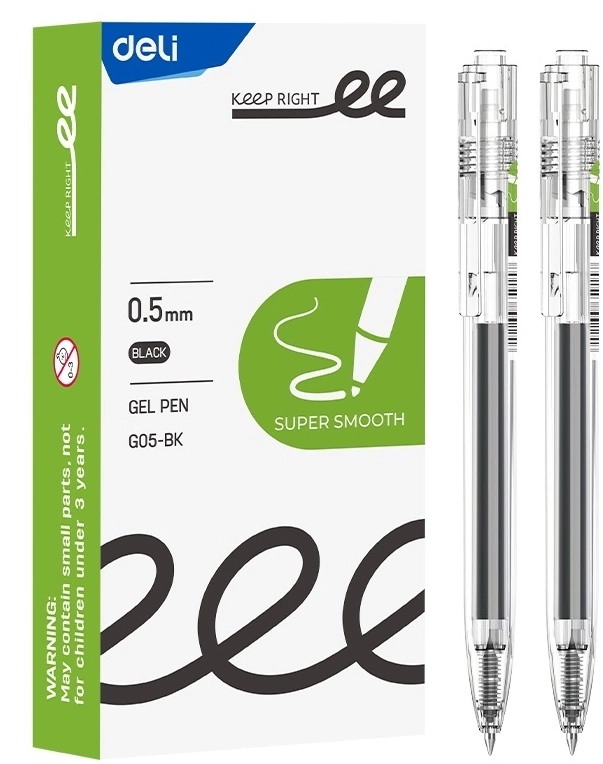 Ручка гелев. автоматическая Deli EG05-BK прозрачный d=0.5мм черн. черн. (12 шт. в упаковке)