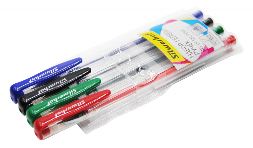 Набор ручек гелев. Silwerhof Laconic d=0.7мм индив. пак.ев. 4цв.
