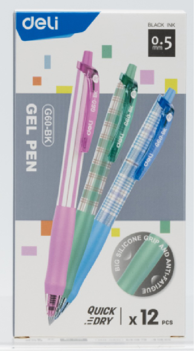 Ручка гелев. Deli EG60-BK ассорти d=0.5мм черн. черн.