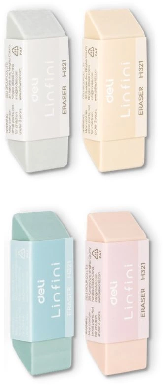 Ластик Deli EH321 Linfini 54x20x10.5мм резина термопластичная ассорти индивидуальная картонная упаковка (32 шт. в упаковке)
