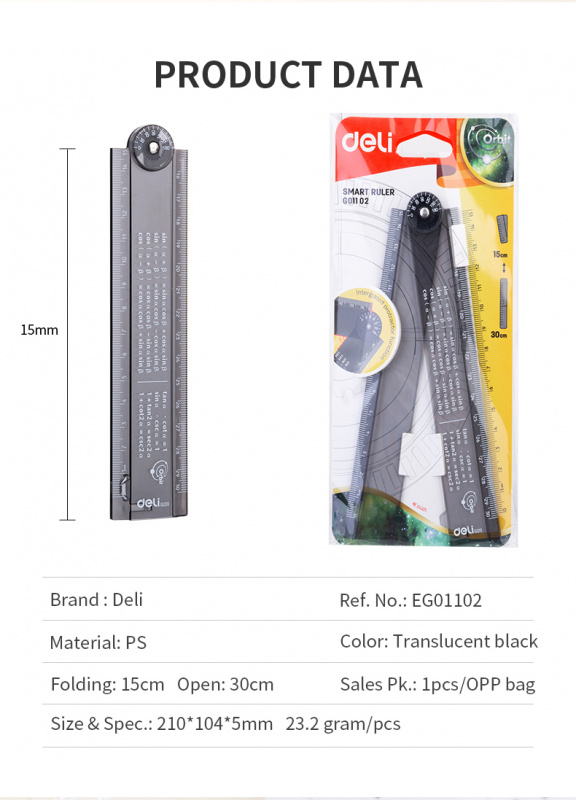 Линейка Deli EG01102 Orbit пластик дл.30см прозрачный/тонированный складная пластиковый пакет с европодв. (36 шт. в упаковке)