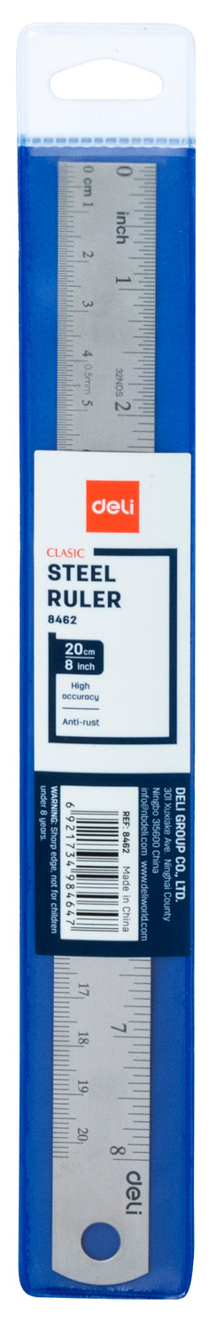 Линейка Deli E8462 miYou сталь нержавеющая дл.20см серебристый двухсторонняя шкала ПВХ футляр (упак.:1шт) (24 шт. в упаковке)
