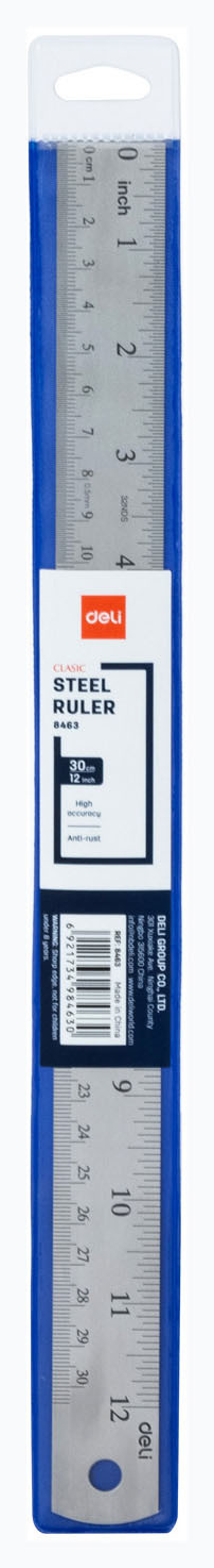 Линейка Deli Essential Metal 8463 сталь нержавеющая дл.30см ассорти (24 шт. в упаковке)