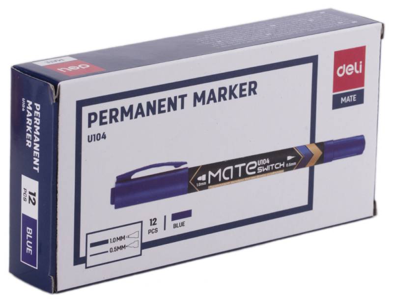 Маркер перманентный Deli EU10430 Mate двойной пиш. наконечник 0.5-1мм синий (12 шт. в упаковке)
