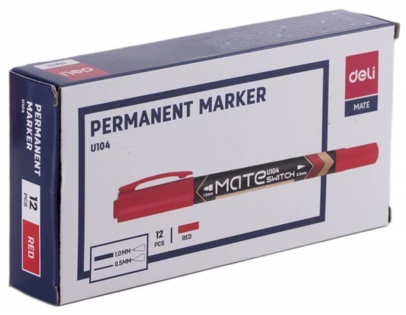 Маркер перманентный Deli EU10440 Mate двойной пиш. наконечник 0.5-1мм красный (12 шт. в упаковке)