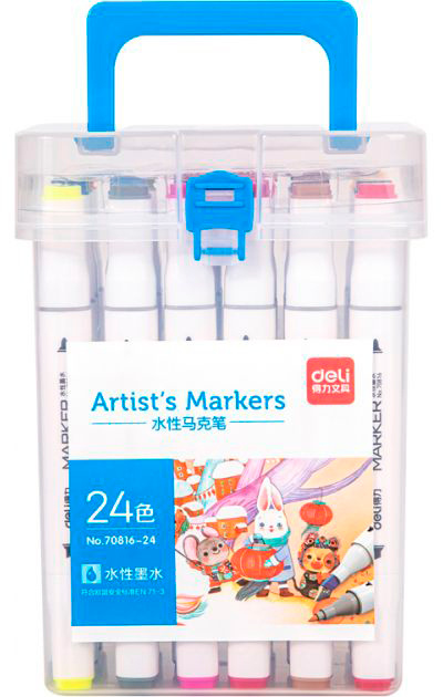 Набор маркеров для скетчинга Deli 70816-24 двойной пиш. наконечник 24цв. пластиковая коробка (24шт.)