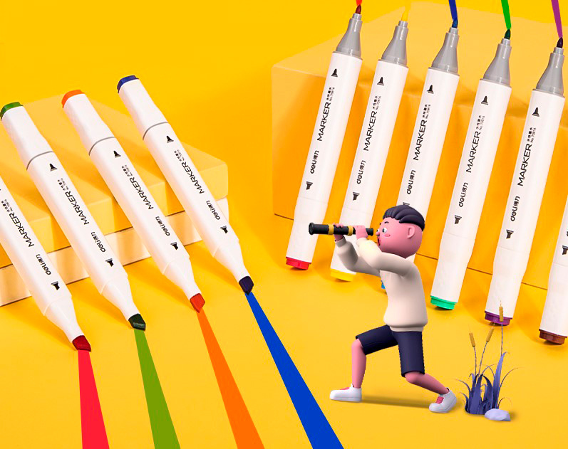 Набор маркеров для скетчинга Deli 70816-12 скошенный пиш. наконечник 12цв. пластиковая коробка