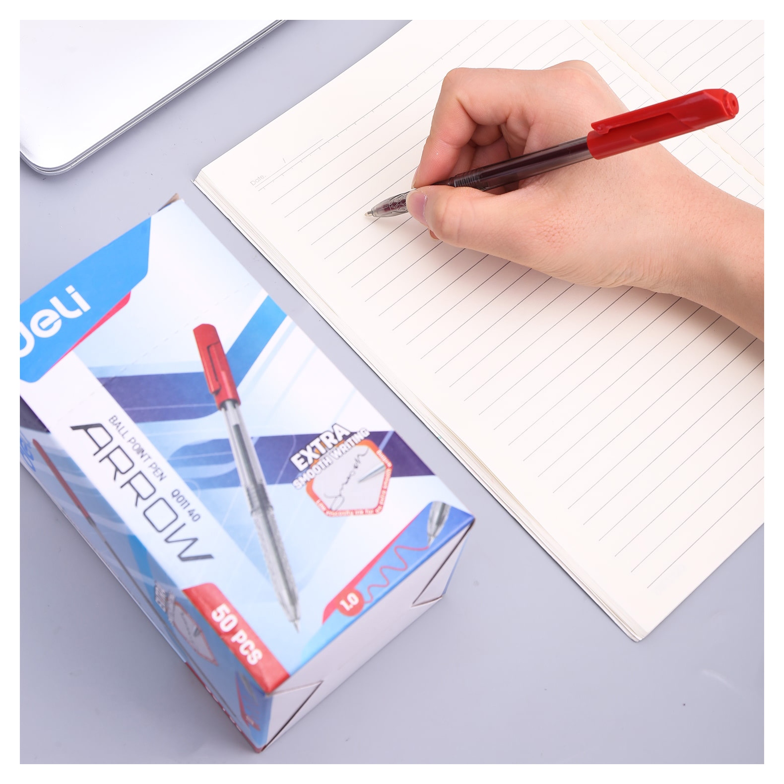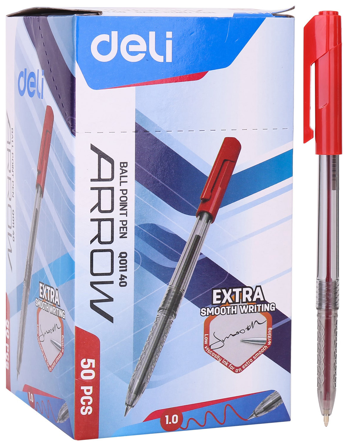 Ручка шариков. Deli Arrow EQ01140 прозрачный/красный d=1мм красн. черн. (50 шт. в упаковке)
