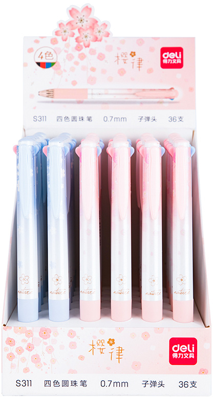 Ручка шариков. автоматическая Deli S311 ассорти ассор. черн. линия 0.7мм резин. манжета (36 шт. в упаковке)