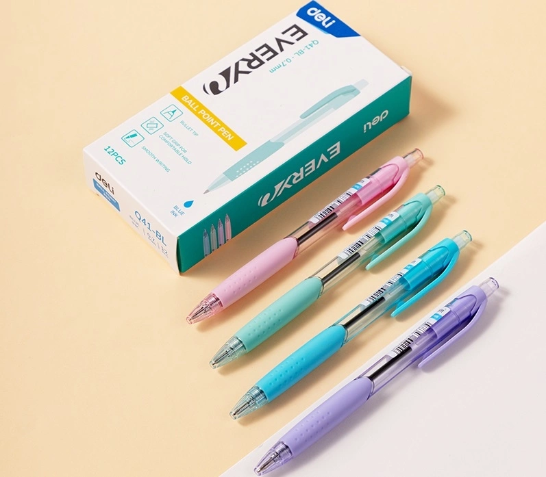 Ручка шариков. автоматическая Deli Every EQ41-BL прозрачный/ассорти d=0.7мм син. черн. резин. манжета