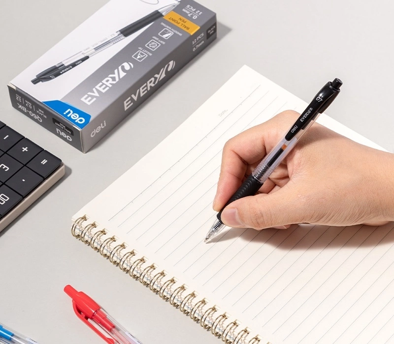 Ручка шариков. автоматическая Deli Every EQ60-BK прозрачный/черный d=0.7мм черн. черн. кругл. резин. манжета