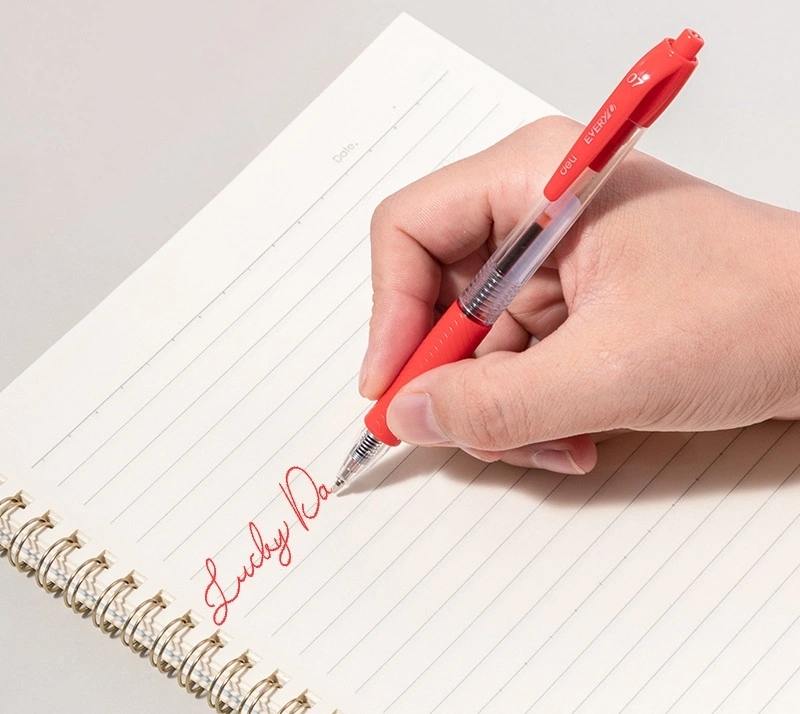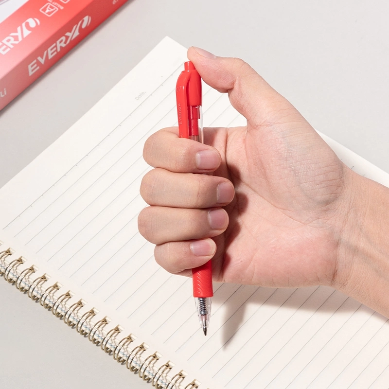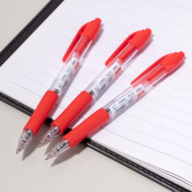 Ручка шариков. автоматическая Deli Every EQ60-RD прозрачный/красный d=0.7мм красн. черн. кругл. резин. манжета