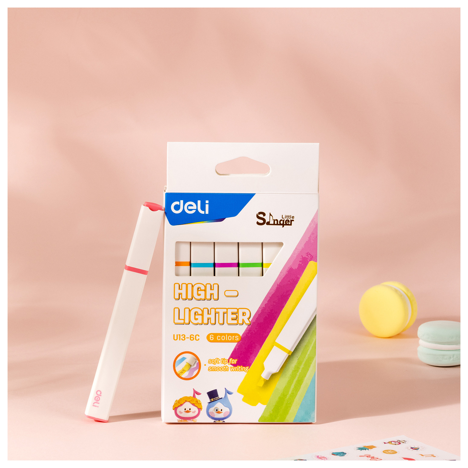 Набор текстовыделителей Deli EU13-6C Little Sinnger скошенный пиш. наконечник 6цв. коробка с европодвесом (24 шт. в упаковке)